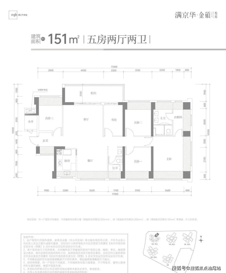 151㎡的5房2厅2卫,设计的是横厅南北通透格局,独门独户,客厅4.5米开间,四开间朝南,4房卧室分别做到了主卧27.44㎡/次卧11.97㎡/次卧11.24㎡/次卧11㎡/次卧8.36㎡(包含墙体飘窗),得房率79.6%(不加赠送),客厅连接次卧出6.7米长的观景大阳台,阳台主朝西北向看科学公园。赠送面积32.09㎡,加上赠送得房率100.84%。