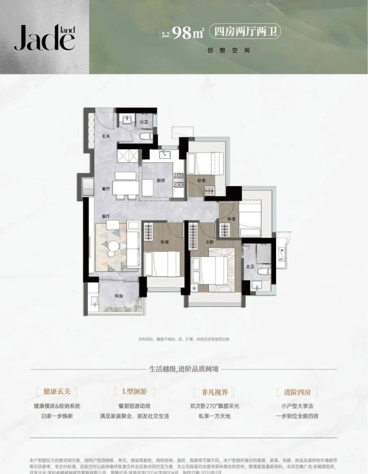 【98㎡4房2卫】板块内目前「唯一」面积段区间做到四房的产品‼空间刺客‼