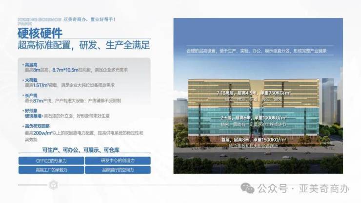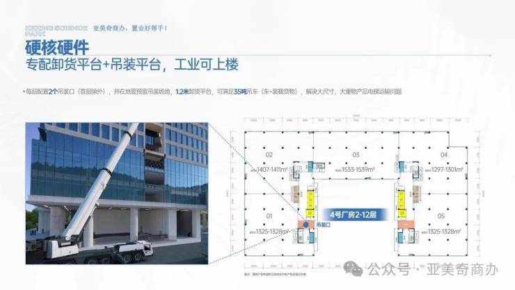 高层高:最高8米层高,8.7m*10.5m柱间距,满足企业多元需求