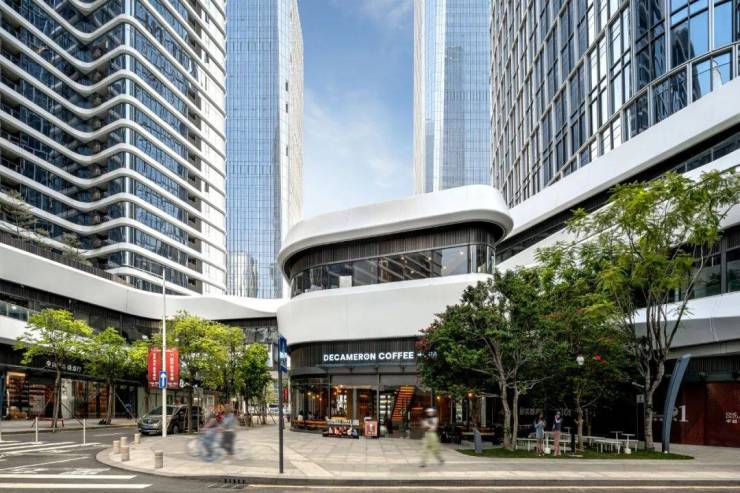 各种主题、各具特色的公共开放空间贯穿于项目整体开发中,包括景观主干道两侧的各类公共广场与小微空间及空中的“云端”会所。郁郁葱葱的景观主干道将文化广场、表演广场、企业花园和雕塑公园交织在一起。街边的咖啡馆、餐厅和商店服务于居民的同时,赋予街区活力与生机。各空间之间的柔性边界相互渗透,营造出开放宜人的环境,让来访的公众乐在其中。千态万状的零售走廊形成了巨大的地下商业网络,将社区打造成为多层次紧密相连的“城中城”,24小时有序运行。该项目的核心地带不仅将“以人为本”的理念融入实践,对步行友好,而且切实创造出了深受访客与社区欢迎的公共领域。