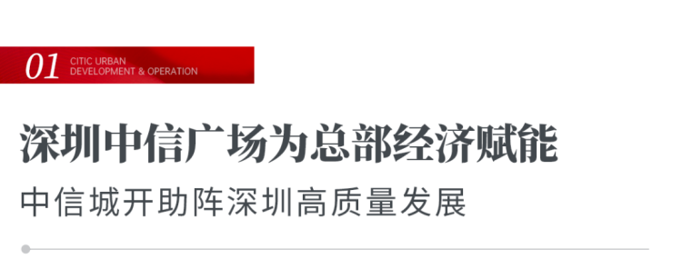 深圳中信广场以中信产业生态、融合中信30余年底蕴的专业化开发运营管理、集结全球智慧为深圳高质量蓬勃发展而来。