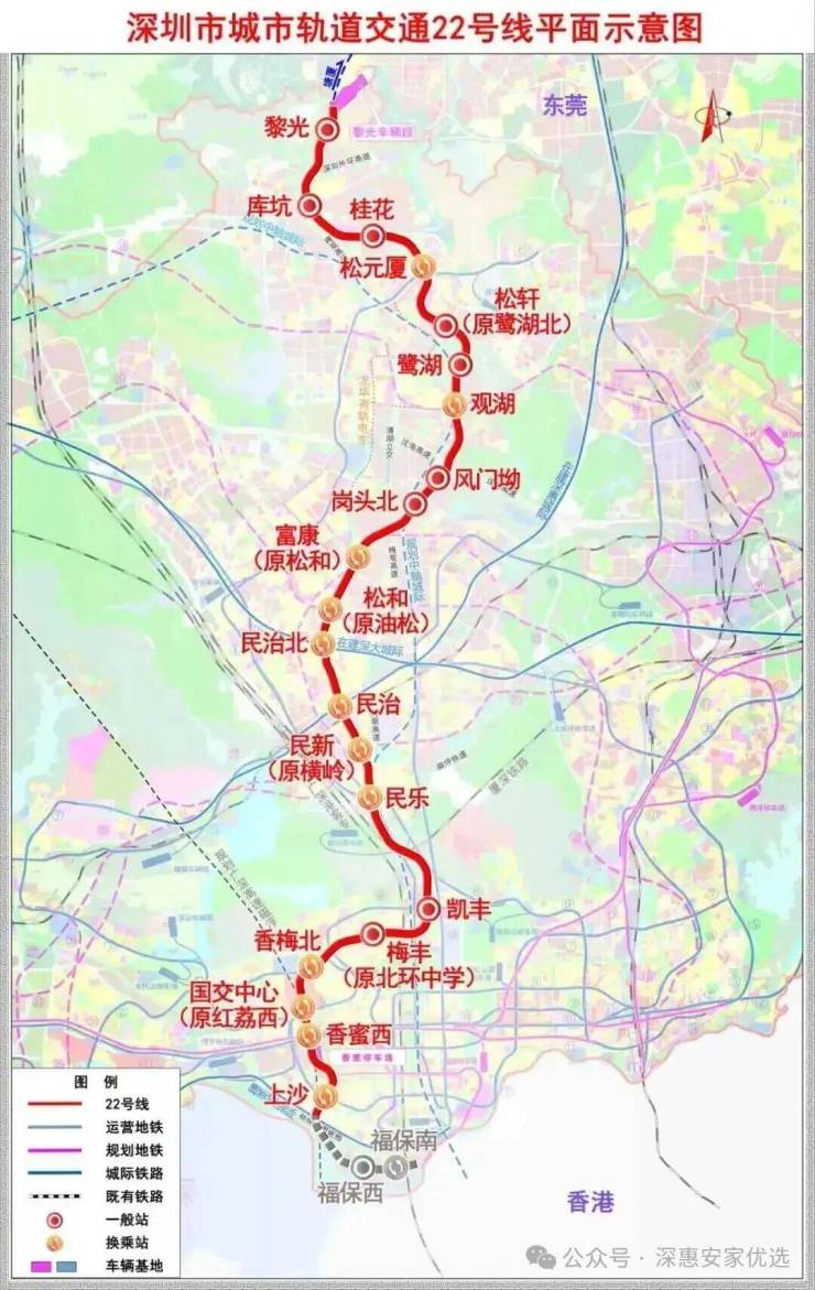 22号线鹭湖站在建,始于龙华黎光站,途经龙岗区,终于福田上沙站,开通后到福田仅需45分钟。