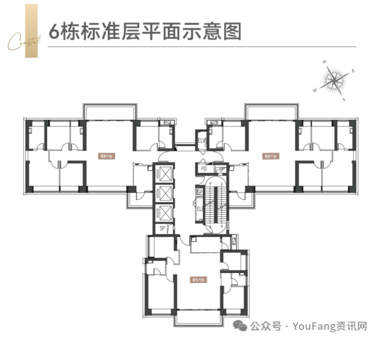 3梯3户,“品”字排布,确保每户通风采光、视野无遮挡,3户均为纯大户型;