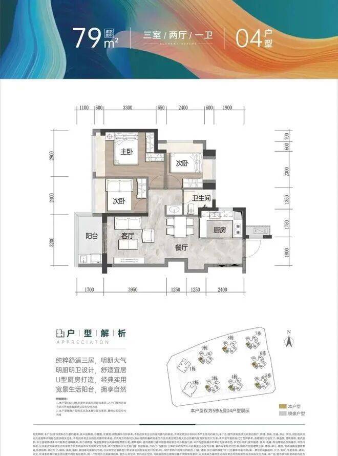 建面约79㎡ ,3房2厅1卫