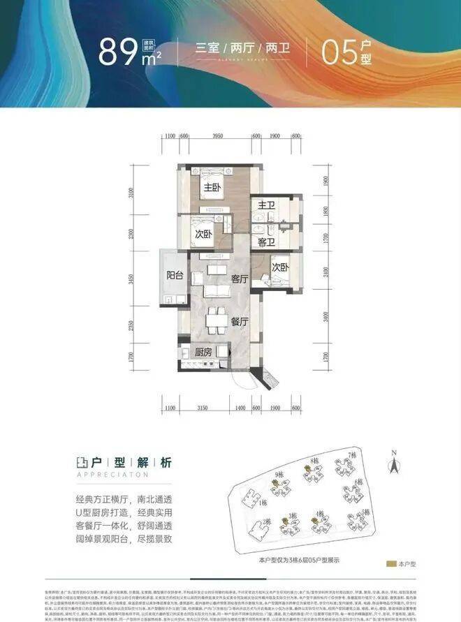 建面约89㎡ 3房2厅2卫(横厅)