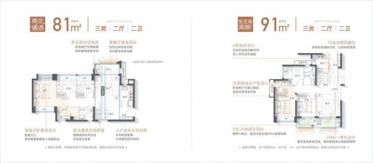 ①精聚焦青年家庭需求,联发精研定制建面约81/91㎡超能三房两卫成长空间,综合使用率高;