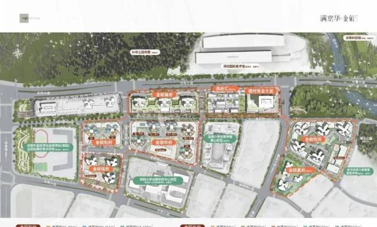 满京华金硕臻府,位于深圳光明区光明科学城“一心两区”的核心区域,紧邻占地208万平方米的科学公园,属于光明规划中“最宜居、居住板块最大”的片区。项目北侧与科学公园仅一街之隔,东、南侧为深圳小学光明学校狮山校区及初中校区,周边市政配套规划密集,如深圳科技馆新馆、国际美术馆等均在建设中,预计2026年前全面落成。