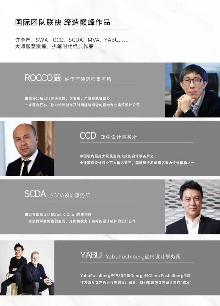 许李严、CCD、SCDA、YABU、ALT、SWA、MVA、迈进等国际顶级大师团队的智慧在此集结。