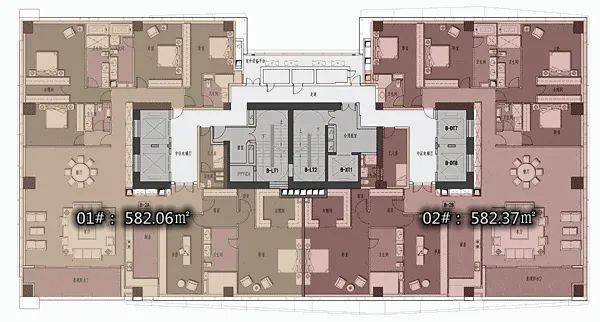 D2户型:约340㎡4房2厅4卫:B栋28-52F(高区),东朝向,户型与343㎡户型基本相同。