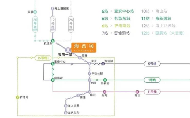 同时12号线也是支撑深圳西部经济线,南接前海自贸区,北接大空港、国际会展中心等国家级配套带来商务旅客百万人流,无缝换乘1、2、5、9、11号线地铁,被称为“换乘大户”快速前往深圳各区域中心。