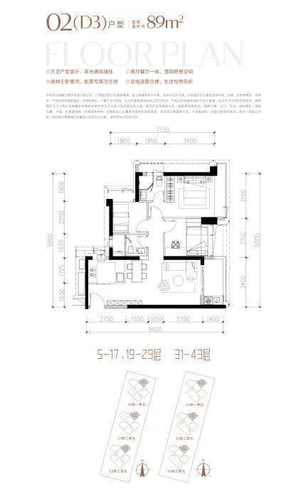 约89㎡3房2厅2卫,户型方正呈竖厅布置,结构上客餐厅一体、动静分区。设计上充分贯彻实用性,约89㎡做到少见的3房2卫,在前海这类改善片区的稀缺性很高。