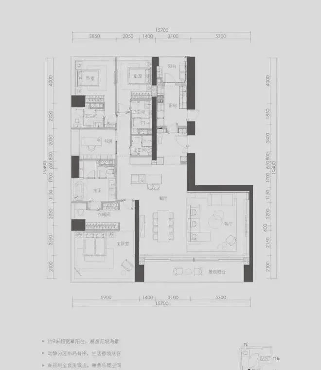 公寓特色:1栋高端公寓,户型区间约230-700㎡奢华大平层