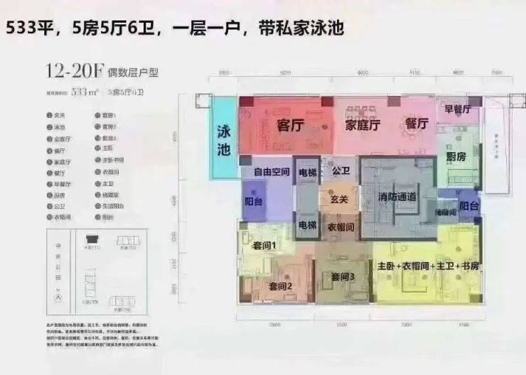 户型产品做得有亮点,500平以上一层楼只有一户。在自家的私家泳池里坐看深圳繁华都市,足够大气奢华。