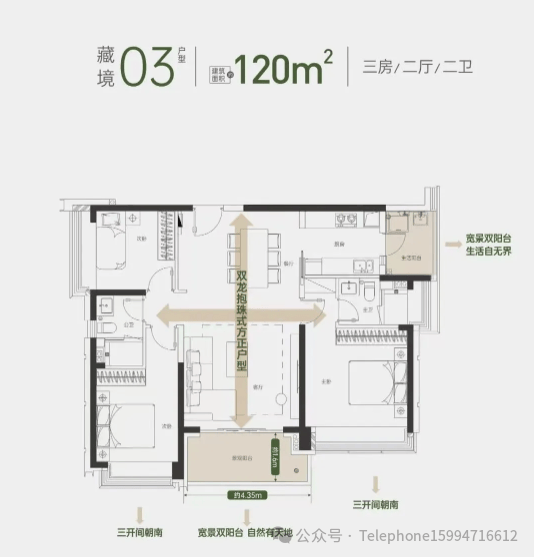 建面约120㎡三房两厅两卫:横厅户型看山景,竖厅户型近北环大道。无论你选择哪种户型,都能享受到开阔的视野和舒适的居住体验。