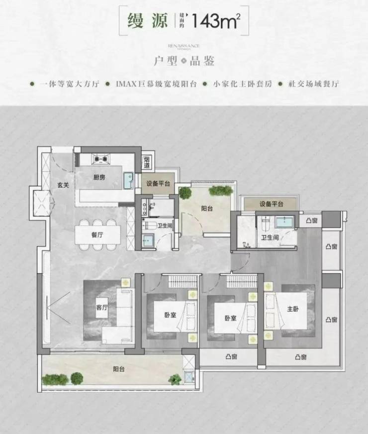 产品方面,中海云启源境打造约90-143㎡新规三、四房,使用率较高。