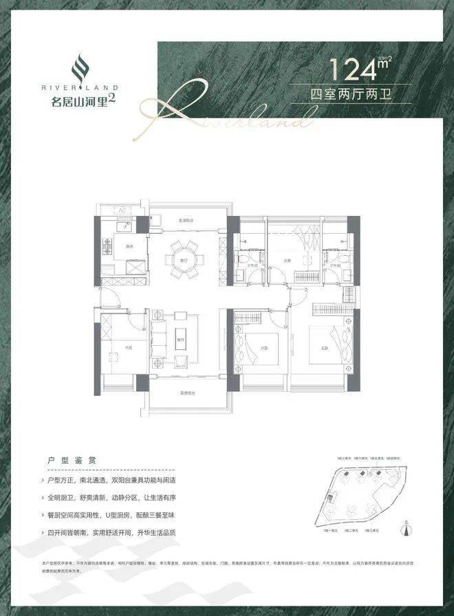 建面约124㎡4房2厅2卫