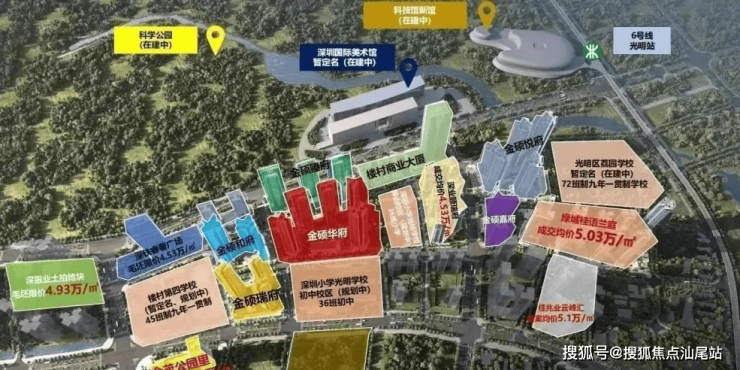 地铁配套:项目距离6号地铁线“光明站”约600米,步行需要11分钟左右,2站到凤凰城站,可以换乘13号线,4站到光明城站,这里可以换乘光明城高铁站/6号地铁线,6站到宝安上屋站,11站到南山西丽留仙洞,14站南山高新园,18站到后海。