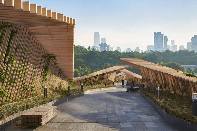 3.深业上城远超典型商业开发项目,通过横跨周边高速公路的人行天桥将两个主要公园与场地连接,从而实现公共领域的升级改造。