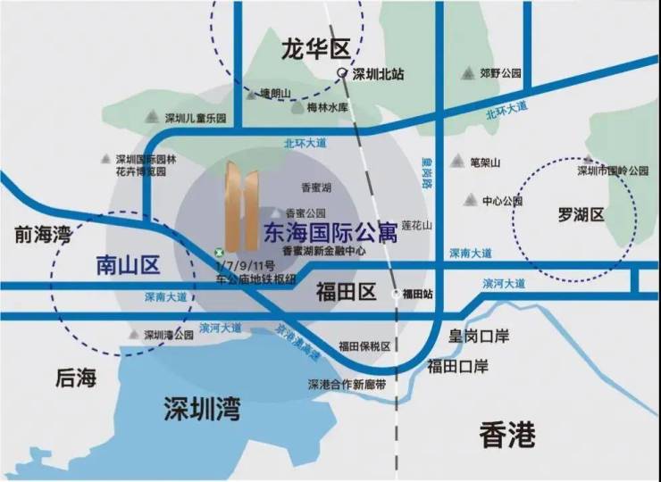 东海国际公寓的交通配套极为便捷,楼下即为深南大道,对接京港澳高速G4福田出入口,可快速通达深圳各大区域及深圳机场。同时,项目紧邻地铁1、7、9、11号线车公庙站,形成了四通八达的立体交通网络。此外,福田高铁站也近在咫尺,为国际出行提供了极大的便利。