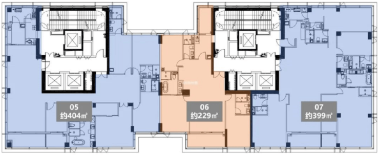 "想象一下,你身处一个409平米的超级平层中,设计师巧妙地安排了四套间,使生活和休息的区域划分得井然有序。独特的西端头公共空间,采用"L"形设计,超大面宽尽显豪华气派。卧室则位于东侧,远离喧嚣的T2办公楼,保证你拥有一个宁静且私密的生活环境。