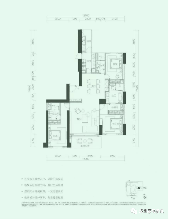 这个户型只存在于T1B栋的33-38层,数量稀少,极具珍藏价值。这样的居住体验,无疑会让你感受到舒适与尊贵并存的生活品质。"