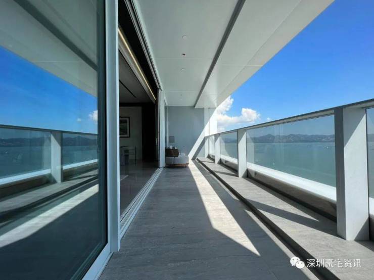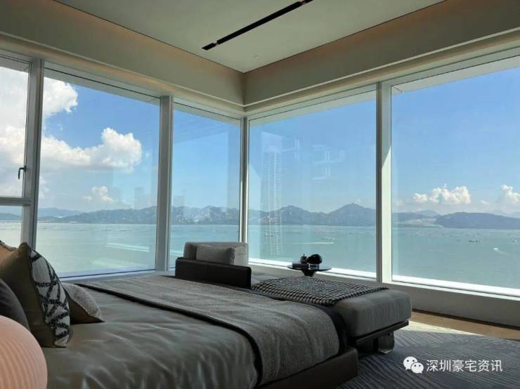 约9m长的一线海景大阳台,一望无际的海景可以铺满视野。270°采光,270°景色环绕,L型全景落地窗大主卧,绝对的奢享。整体上西端头景观面要好些,西面靠内湾视野更开阔,东面则是住宅区。