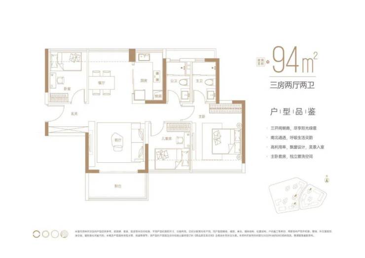 建面约94㎡三房两卫