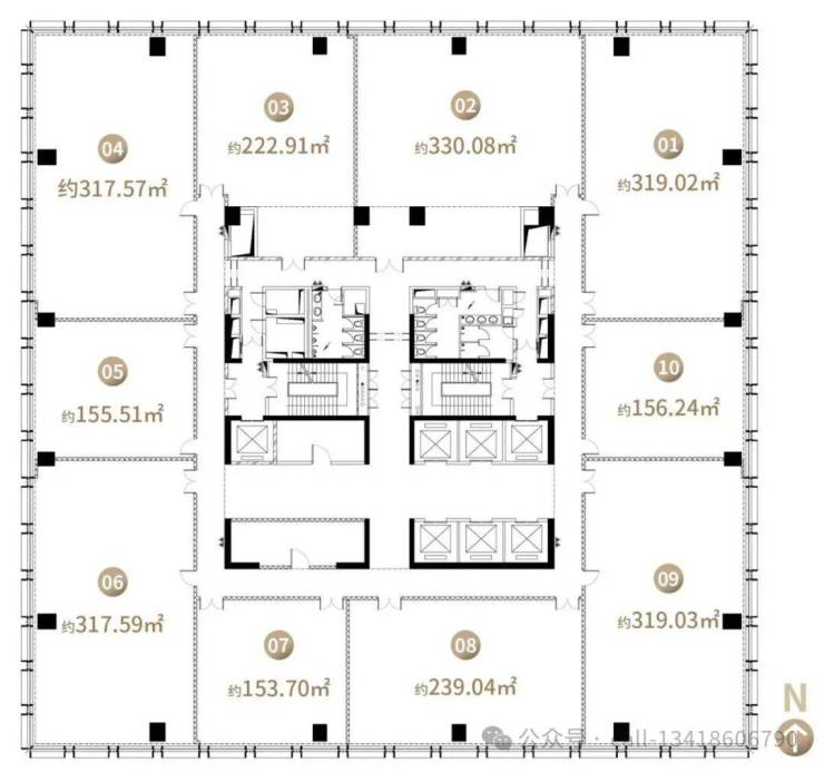 •标准层面积:2,400-2,500 ㎡