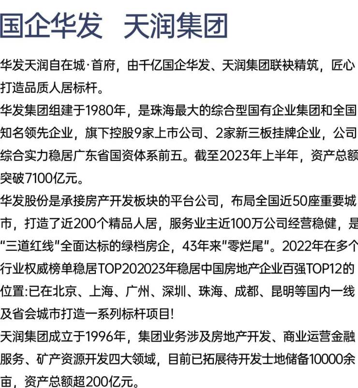 开发商:华发股份、天润集团