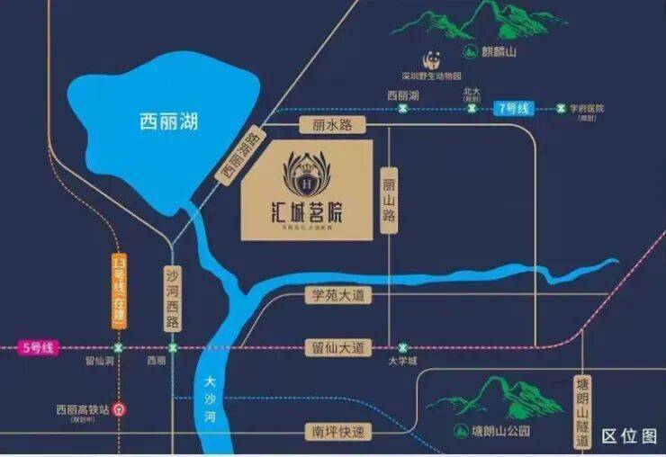 汇城茗院位于南山西丽湖路与丽水路交汇处,属于西丽湖国际科教城区域,南面近沙河支流,北面高层可以看西丽水库;