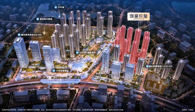 公共交通方面,「珈誉玖玺」位于综合体南侧,临近11号快线塘尾地铁站。