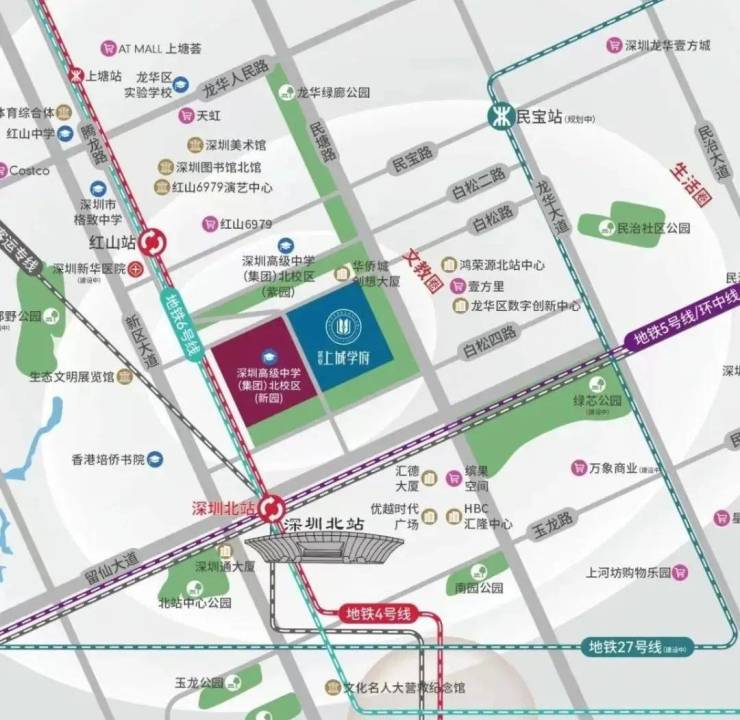 在交通配套方面,深业上城学府紧邻深圳北站和地铁4号线、5号线和6号线等交通枢纽,方便购房者快速抵达深圳各核心区域。此外,项目周边还有多条公交线路和出租车停靠点,为出行提供便利。