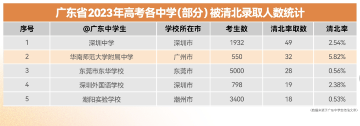 华附不仅稳居广东省高中排名第一,也是广东改革开放以来培养出高考总分状元最多的学校,2001至2023年广东唯一重本率连续多年超90%,每年向清华,北大输送优秀毕业生20—30人,每年近75%的高三毕业生被国家985大学录取。