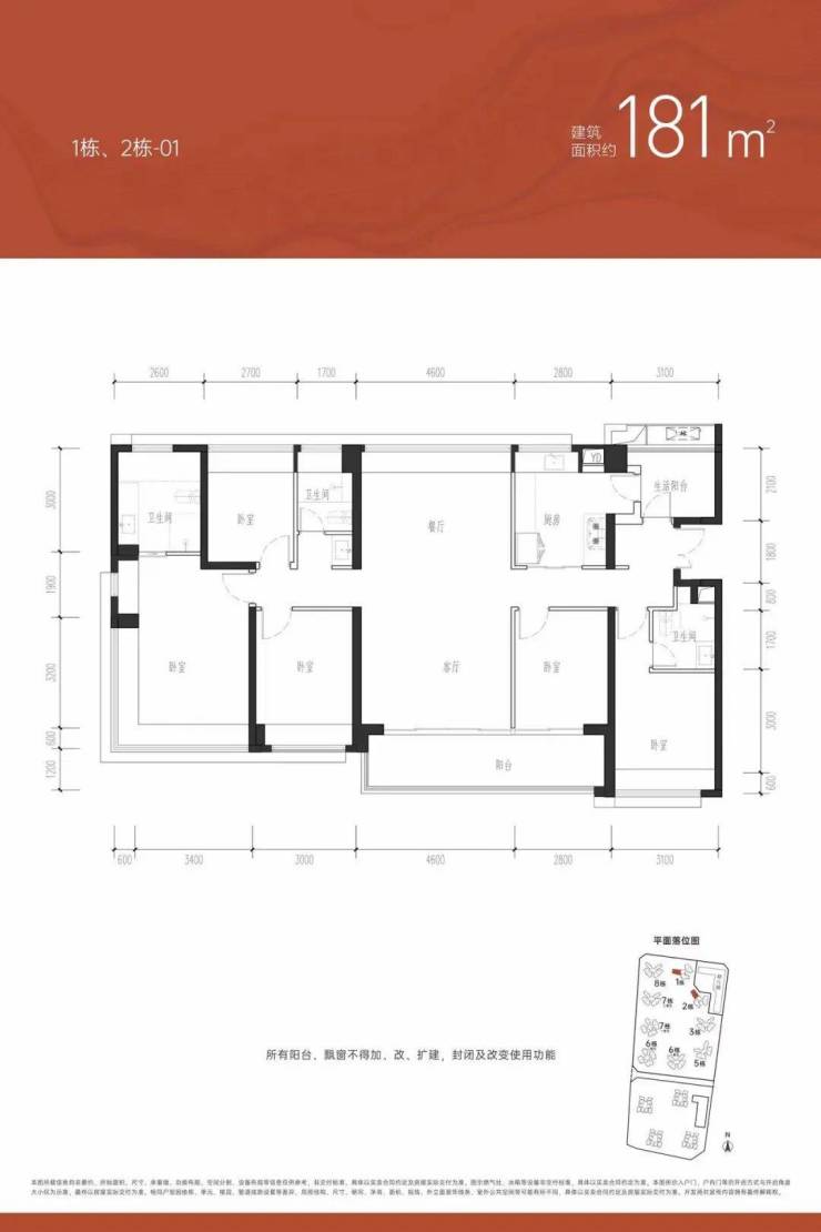 【产品面积段】建面约76-181㎡3-5房