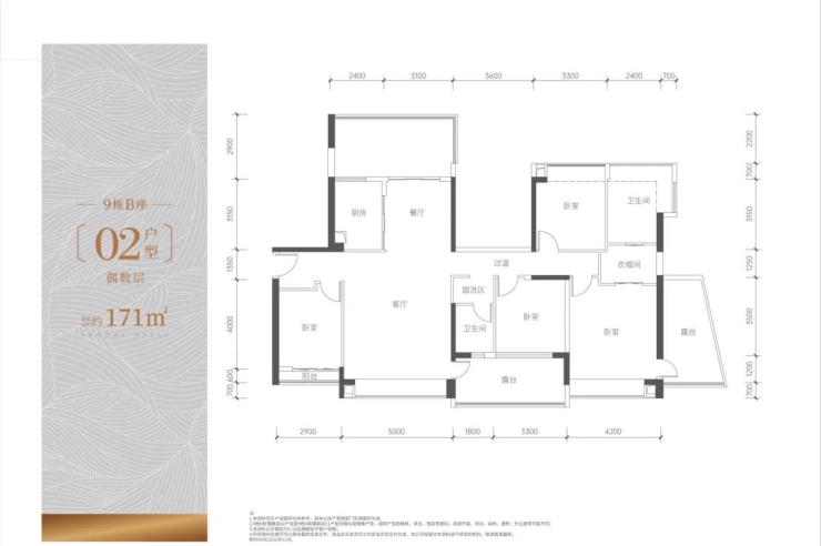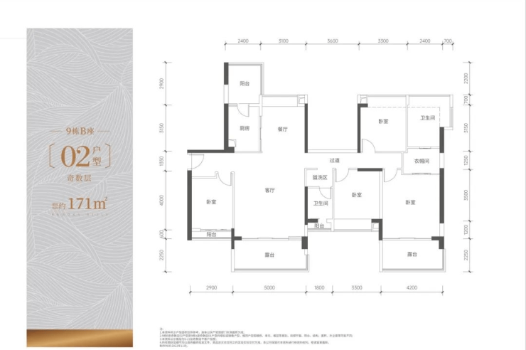 171-173㎡4房3卫1220-1382万 单价7-8.2万