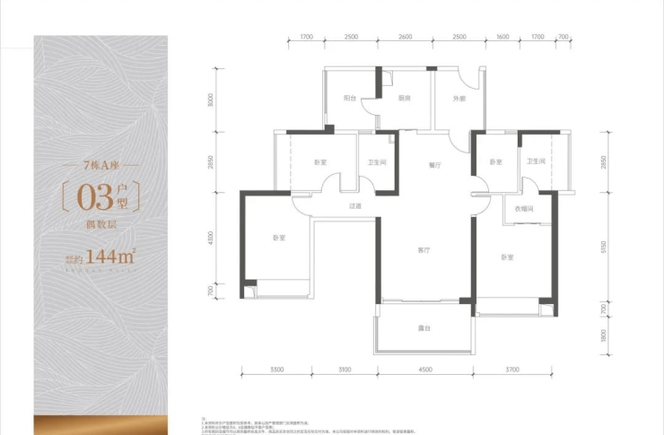 140-145㎡4房2卫990-1160万 单价7-8.6万