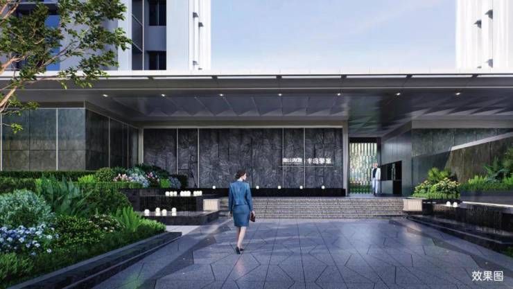 三重尊奢归家,主入口前设置迎宾广场,拾级而上,入社区后景致相依,酒店式的归家奢华大堂,营造归家尊崇仪式感。