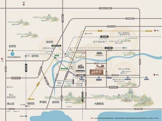 2城轨:深大城际坪山站约4KM(在建中)、近深惠城际大鹏支线,通达大湾区。