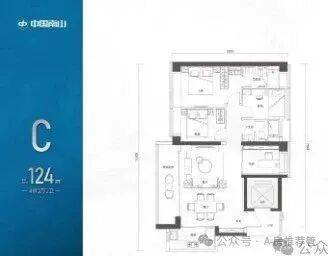 【124㎡的3+1房2厅2卫】1栋02/2栋04户型,电梯入户送独立公区,设计的是竖厅格局,动静分区,主卧套间设计,还有一个多功能间可以做书房,U型厨房,公卫三段式分离,得房率:72.07%(不含赠送)西南朝向;