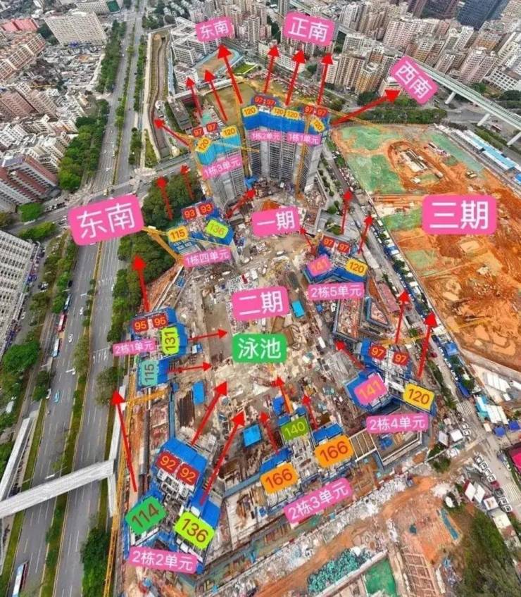 1栋1-4单元目前主体已出地面6层左右,竣工时间为2025年5月18号,预计在2026年中旬前交付。产品面积段比较丰富,涵盖建面约92-166㎡的3-4房住宅,其中预计今年入市的为建面约92-136㎡产品,并搭配2梯4户/3梯4户/3梯3户的舒适梯户比,以及1:1.02的车位比。