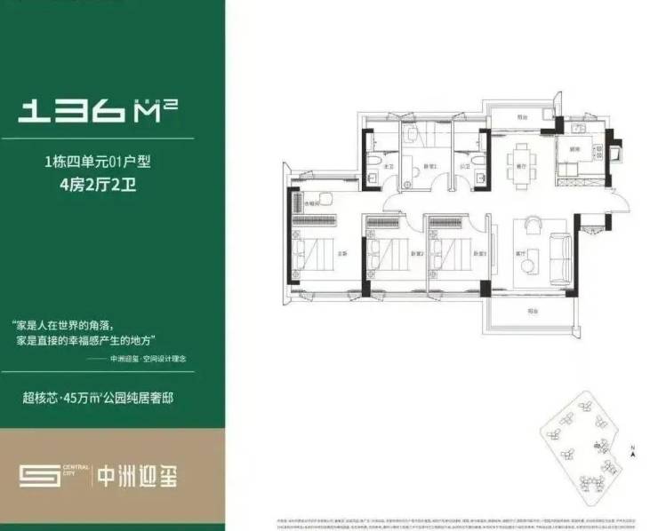 『中洲迎玺花园』本体分为2个地块,总占地7.7w平,总建面约45w平,是北站近年来所有新盘中最大的体量,相当于周边新盘的几倍大,并且无保障房、回迁房、安居房,主打的就是一个纯粹住宅大社区,光园林占地就有1.6万平,最大约180米的楼间距保证采光。同时迎玺也是板块里容积率最低(4.24)+车位最充足(超过1:1)的项目。_Vip Tel:400-088-3336 中介勿扰