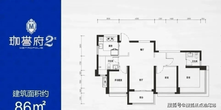 86㎡的3房2厅2卫,设计的是竖厅南北通透格局,客厅3.2米开间,3个卧室分别为3.2/2.75/2.4米的宽度,主卧270°环幕飘窗视野,U型厨房,得房率:77.54%(不含赠送),阳台进深1.3米,主朝西北、东北、东南或西南朝向。
