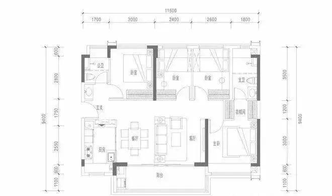 约114㎡四房两厅两卫