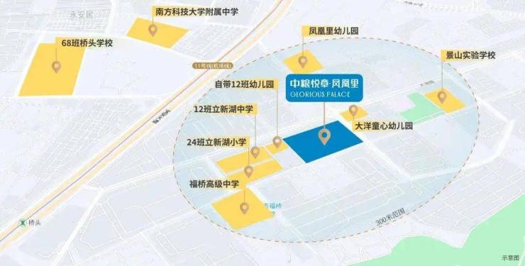项目周边有南方科技大学附属中学、宝安区桥头学校、立新湖外国语学校等学府,未来还将配建一所12班幼儿园和一所36班九年制学校。
