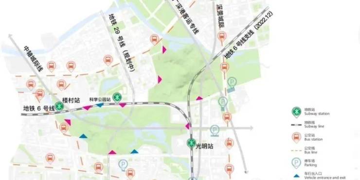 3地铁:邻6号线光明站/光明大街站、6号线支线 (在建中)、13号线 (在建中)