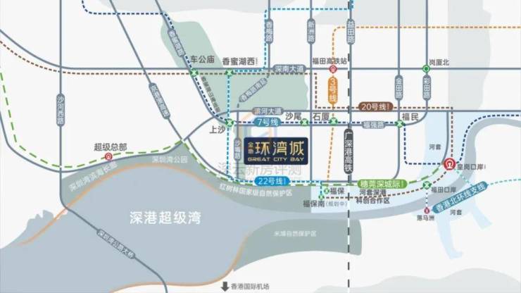 项目附近有7号线沙尾站和上沙站,还有规划中的22号线;自驾也很方便,从新洲路开车去深圳中心区约5分钟,从福强路去往深圳湾约20分钟车程。