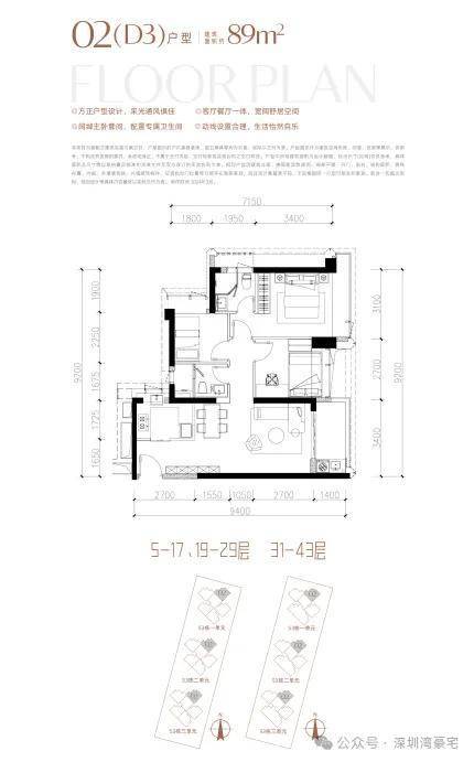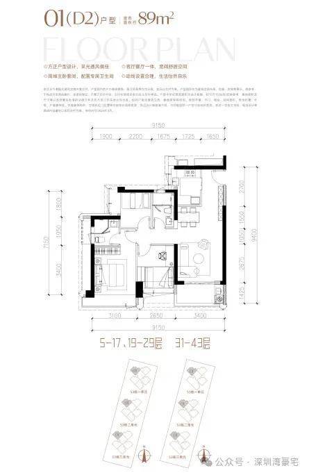 梯户比:两梯两户,三梯两户,三梯四户,三梯五户