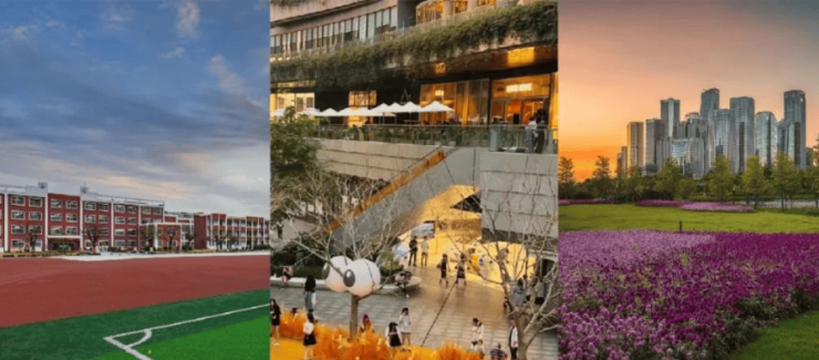 目前桂湾公园已建成,南临尊府,可以推窗赏景;演艺公园(规划中)由华侨城操刀改造,将实现二次升级。