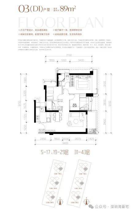 位置比较靠内,光照和私密性都不错,且楼间距较大,视野无遮挡,综合条件是几个户型里最好的。