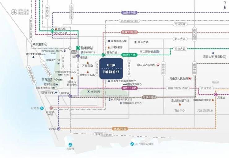 前海时代位于前海桂湾片区南侧,与月亮湾大道及桂湾河相邻,可享桂湾河一线河景,向东南可眺望南山,往西南则可观赏城市海景。